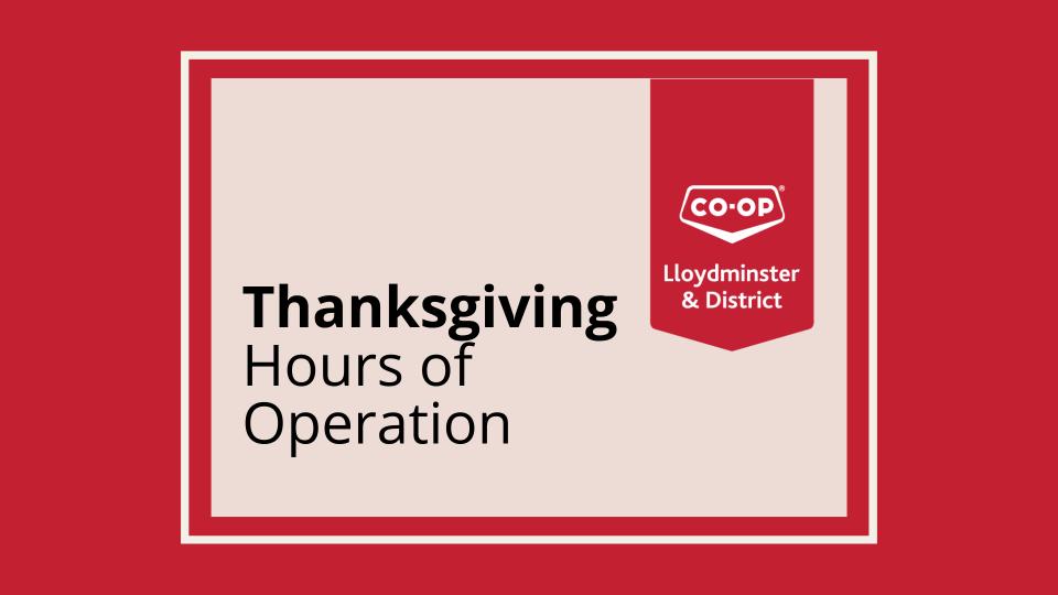 Thanksgiving 2025 - Hours of Operation - Lloydminster and District Co-op
